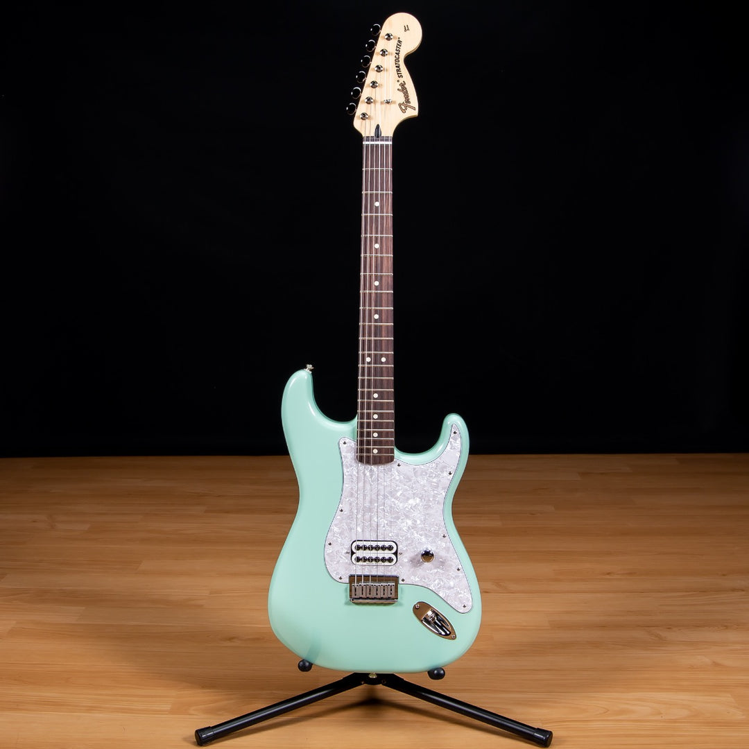 The Tom DeLonge Strat has a special look, custom pickups, and a unique neck. These features make it different from a regular Fender Stratocaster.